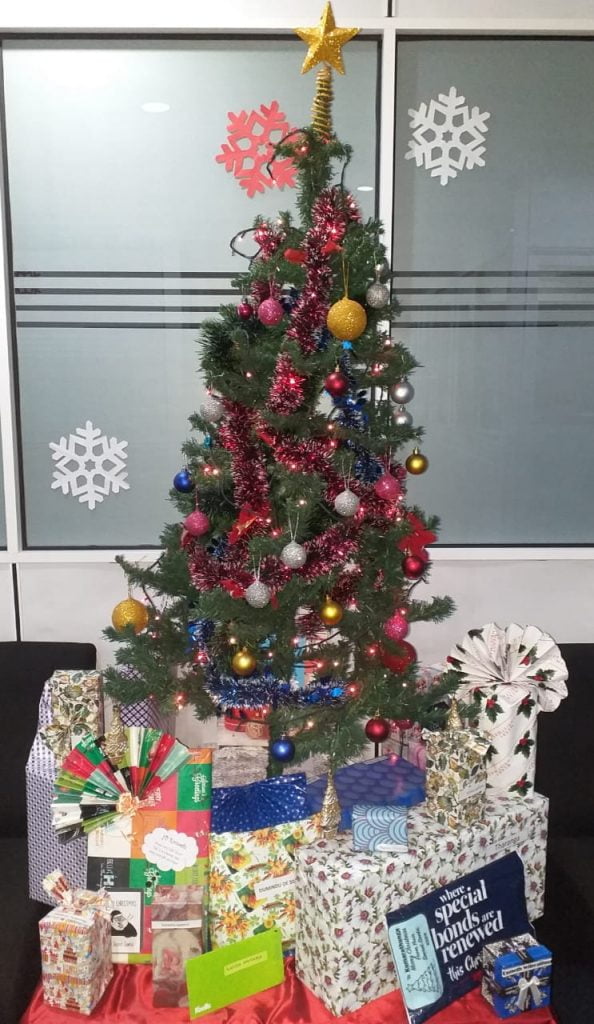 IOL staff posing a photograph after receiving their gifts from ‘Secret Santa’, an arrangement by which a group of friends or colleagues exchange Christmas presents anonymously, each member of the group being assigned another member for whom to provide a small gift, typically costing no more than a set amount. With this goodwill gesture it has shown a high team spirit which in turn helped company’s progressive forward march.